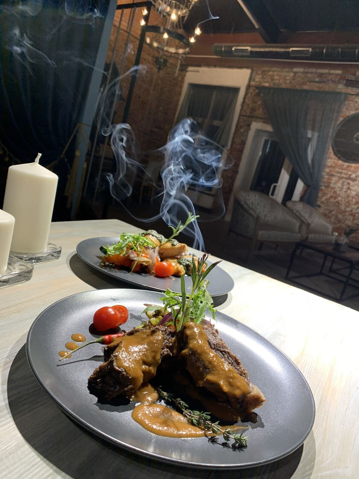 - Говяжьи щеки с овощами и соусом демиглас — 1 порция.