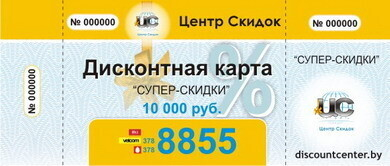 Для получения скидки Вам достаточно приобрести дисконтную карту в торговых точках Центра Скидок (в салонах "Life" в гипермаркетах "ProStore" на пр-т Дзержинского 126 и пр. Победителей 8, в торговом центре "Титан" на пр. Дзержинского 104, в торговом центре "Глобо" на ул. Уманская, 54, полный список точек продаж на