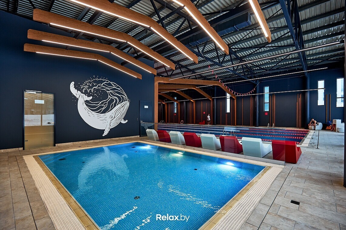 Аквазона занимает более 600 м2, здесь 25-метровый спортивный бассейн на 4 дорожки, детский бассейн, традиционный хамам и шезлонги для отдыха.