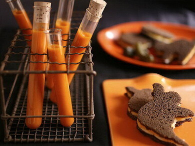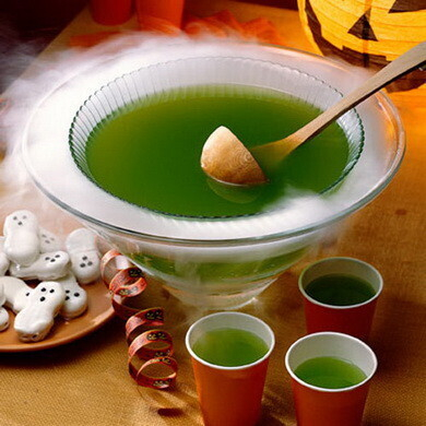 Кроме еды не забудьте подготовить праздничные напитки. Самое простое – кровавая Мэри, поданная в мензурках, как для анализов. Есть и другие мистические коктейли: черная вдова, космический пунш. Их рецепт может быть любым, главное добавить сиропов, которые придают особенные цвета – черный, зеленый, синий. Украсить бокалы можно теми же желатинками или лакричными палочками.