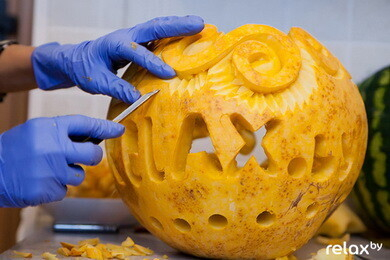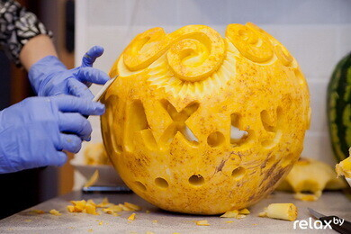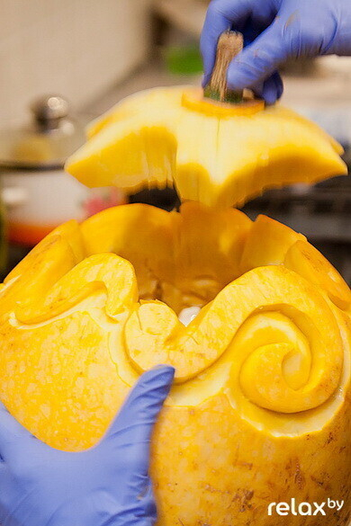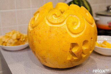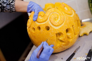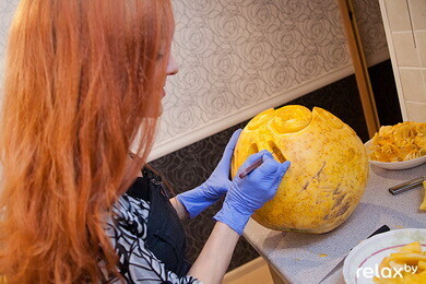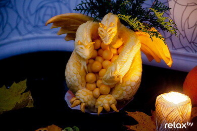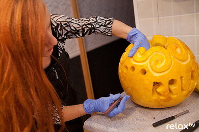 "Если и праздновать Хэллоуин у нас, то по-славянски, с нашими сказочными героями", — делилась своими мыслями Анастасия Капуцкая и показывала нам свои фигурки из тыквы в форме Бабы Яги и Змея Горыныча. Такие фигурки отлично подойдут для украшения вашего стола. Несложную композицию можно попробовать сделать самому либо обратиться к профессионалам.