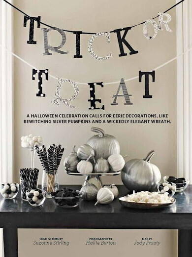 Оглянитесь по сторонам. Практически все, что вы видите можно использовать для праздничного декора. Сухие разноцветные осенние листья можно раскидать по полу, столу и стульям, а небольшой слой муки вполне сойдет за старую пыль. В шкафу завалялись сапожки? Используйте их как вазу для сухих веток! А лохматые шерстяные нитки очень похожи на паутину, ими можно обмотать люстру, стулья гостей или просто развесить на стенах. Не забудьте также про черную драпировку, жуткие надписи красной краской и свечи.