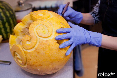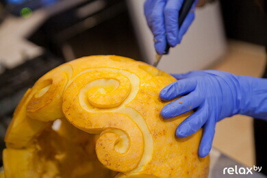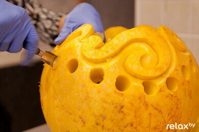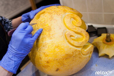 Главный символ Хэллоуина — тыква, мастер-класс по декору которой мы недавно размещали. Чаще всего из нее делают фонарики, но оказывается из нее можно вырезать забавную фигурку, подставку и даже посуду на праздничный стол! Да и сами фонарики можно украсить не только традиционной рожицей, но и абсолютно любым рисунком. Своими советами с нами поделилась мастер по карвингу Анастасия Капуцкая. Изготовление средней тыквы-фонарика у вас займет от 30 минут до 2 часов, в зависимости от сложности и вашей фантазии. Итак, приступим: