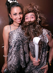 Гораздо интереснее придумывать костюм с кем-то. А если пойти на вечеринку вдвоем, то и образы можно создать парные: киногерои Бэтмен и Робин, Тарзан и Джейн, Малдер и Скалли, люди в черном, мистер и миссис Смит; еда — батон и джем, вино и сыр, попкорн и кола, соль и перец. Можно просто поменяться вещами или одеться одинаково. Если вы любите покер, оденьтесь как карты, если «Монополию», как фишки для игры. Главное подходить к этому с юмором. Костюм Кермита — всего два глаза на капюшоне зеленого спортивного костюма и перчатки, мисс Пигги — бигуди, ушки и пятачок. Немного леопардовой ткани — и вы семейка Флинстоунов, а большие листья, резиновая змея и яблоко — Адам и Ева.