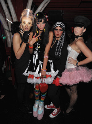 С помощью косметики, красок для лица, театрального грима или простой гуаши перевоплощение из нормального человека в монстра происходит за несколько минут. Во-первых, гораздо легче создать образы животных — котика, леопарда, зебры, панды. Во-вторых, любая одежда + страшный мейк с белым лицом и кровью автоматически причисляет вас к роду нечисти. Если подходить креативно — лицо в стиле поп-арт станет хитом сезона. Пускайте в ход накладные ресницы, фольгу, стразы, кружева, флуоресцентную краску. На лицо клеем для ресниц можно даже приклеить молнии и гвозди.