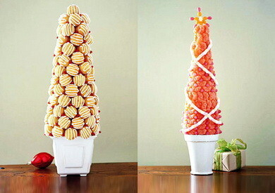 Кто из нас не мечтал в детстве о том, чтобы вся елка была увешена сладостями? Время выполнять свои мечты! Заверните леденцы, шоколадные конфеты, батончики, печенье и крендельки в цветную оберточную бумагу, закрепите ниткой и развесьте по елке. Верхушку украсьте шоколадной звездой, а снизу поставьте сладкого Деда Мороза. Многие украшения уже можно купить в кондитерских магазинах. Кроме того вы можете сделать съедобную «елку» из фруктов, конфет либо заказать у кондитеров зеленый торт. И сладкий праздник вам обеспечен!