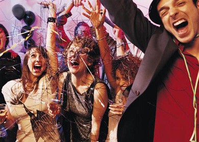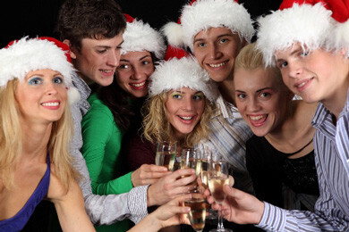 Разумеется, во время такого застолья не обойтись без бокала шампанского и чего-либо покрепче. По традиции пьют за что-то. Почему бы не предложить своим гостям и тут поиграть. Заранее подготовьте карточки с началом тоста, а конец предложите закончить самостоятельно. Как вариант можно использовать следующие отрывки фраз: «Оставив в прошлом воз забот…», «Решили студенты праздновать Новый год в замке с приведениями…», «Когда вы проснетесь 1 января…». Оригинальное начало предложения заставит гостей придумать креативное продолжение.