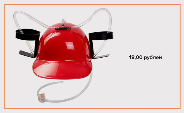 Прикольный и оригинальный подарок. Достаточно одного взгляда на эту «Пивную каску», чтобы появилась улыбка. А что будет, когда устройство займет свое место на голове? Инструкция проста: вставьте банки или стаканы с пивом (кстати, напиток может быть любой; главное, чтобы он вам нравился) в специальные держатели по бокам каски, опустите туда трубку и пейте.