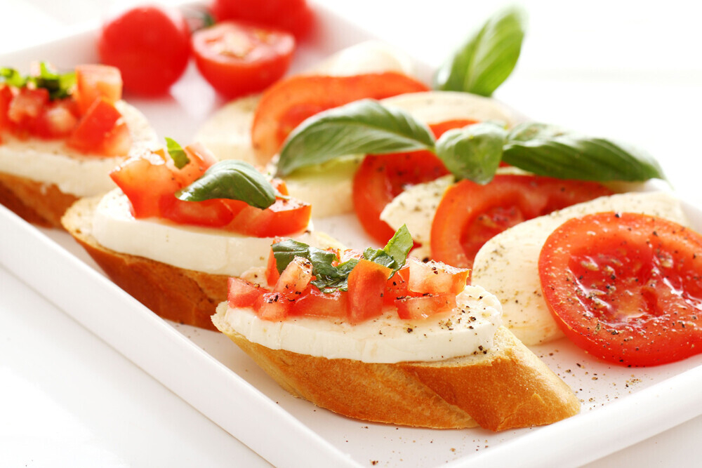 - Что касается закусок, то идеальным вариантом будут небольшие бутерброды. В качестве начинки лучше выбирать овощи или мясо.