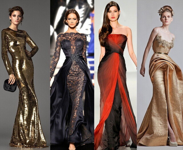 С фасоном платья все просто. Он должен быть максимально женственным и изящным. Сразу оговоримся, что лучше всего исключить короткие коктейльные платья, которые были бы уместны в клубе или на вечеринке. Лучше всего выбрать что-то романтичное, элегантное: например, длинное платье с вырезом на спине или нежную модель с завышенной талией. Подойдет и вариант с открытыми плечами. Как вы уже успели догадаться, в тренде в новогоднюю ночь будет неизменная классика.