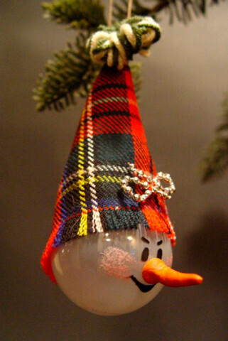 Соберите составляющие. Осталось приклеить снеговику нос, глаза и сделать рот. Не помешает ему и легкий румянец, который можно нанести при помощи ватного тампона, смоченного в растворе краски, разведенной в воде, либо обычными косметическими румянами.