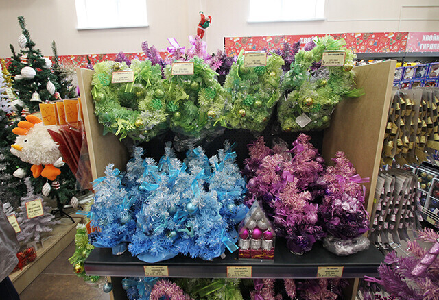 Приличный здесь выбор и искусственных елей. Самая высокая елка в ЦУМе — 7 метров и стоит неприлично дорого. Да и не нужна она: такой вариант рассматривают компании и предприятия. Обычный покупатель придёт в магазин, скорее, за ёлкой в 90 см — это самая низкая, и за неё придется заплатить от 25−30 рублей. Деревья длиной 1,5−1,8 метра стоят от 50 рублей. На цену влияет пушистость ёлки, украшения на ней и страна-производитель. В ЦУМе выставлены деревья из Беларуси, Украины, Таиланда и Китая.