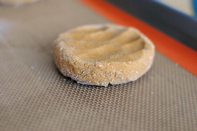 Тесто поставьте на минут 10 в холодильник. Теперь сделайте небольшие шарики из теста и положите их на противень, немного приплюснув.