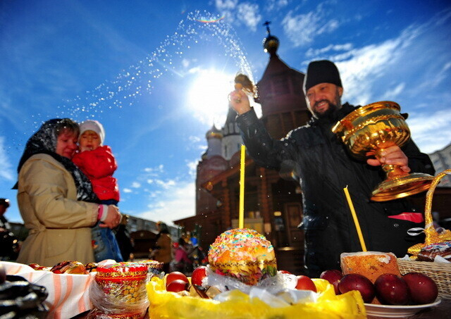У россиян есть обычай: сразу после освещения пасхальных куличей они идут на кладбище к умершим родителям и оставляют им кусочек паски и творог.