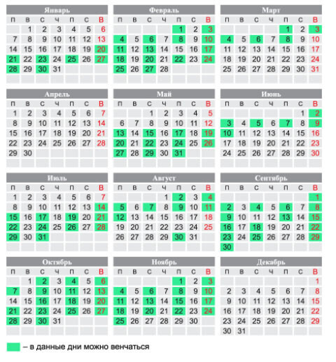 Внимание! Данный календарь может содержать неточность. Перед венчанием вам обязательно необходимо проконсультироваться у священника.