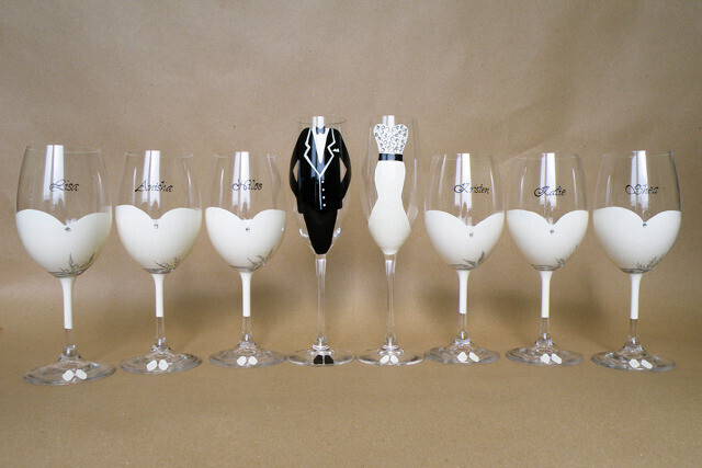 Свадебные бокалы являются, несомненно, одним из основных атрибутов свадебной церемонии. Их дизайн и оформление на современной свадьбе может поражать своим разнообразием. Для декорирования используется широкий спектр как натуральных, так и искусственных материалов. Чтобы создать эффектную композицию, мастера дизайна применяют краски, цветы, драгоценные камни, жемчуг и прочие аксессуары декорирования. Любителям эпатажа и оригинальных решений свадебными бокалами могут послужить и пивные кружки или даже банки из-под консервированных солений.