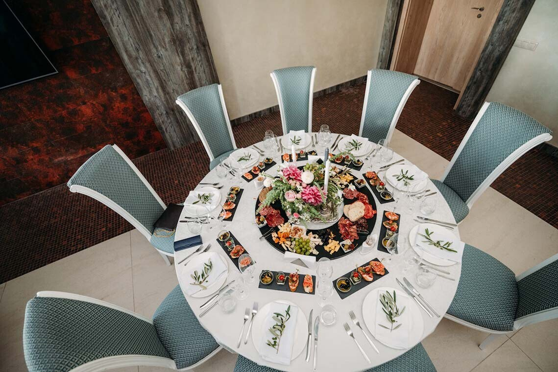 — 3 зала на разное количество гостей: основной — до 180 гостей, стеклянный — до 40 гостей и каминный зал — до 12 гостей.