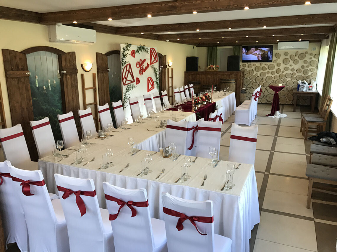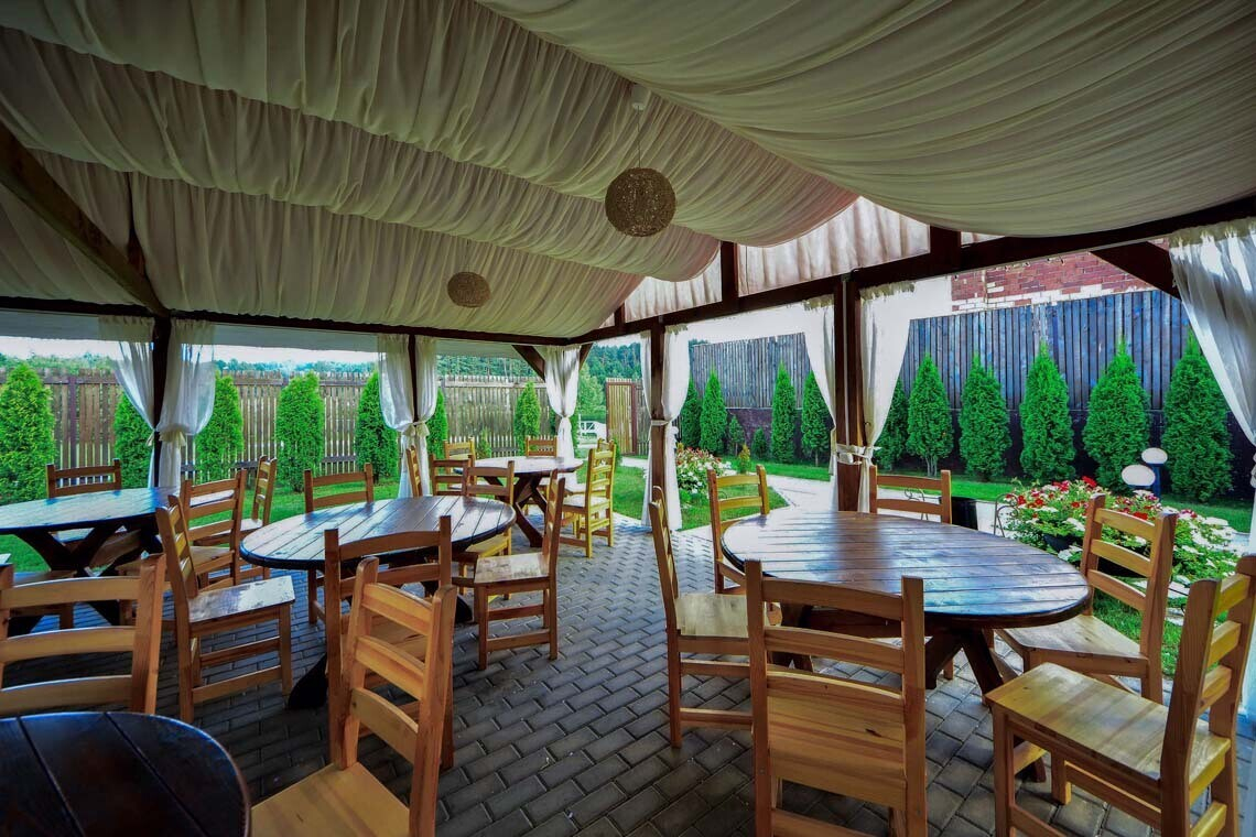 — Ресторан находится на территории комплекса «Логойск», где есть гостиница и домики-шале для проживания гостей торжества.