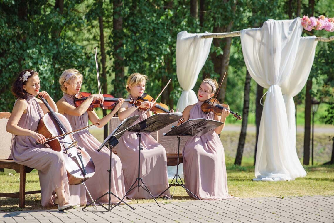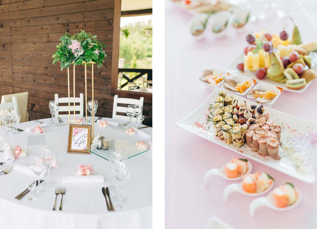 — Проживание в гостинице/коттеджах, организация банкета/фуршета, организация трансфера, изготовление свадебной полиграфии (карты рассадки, меню и т.д.) — на условиях оплаты.