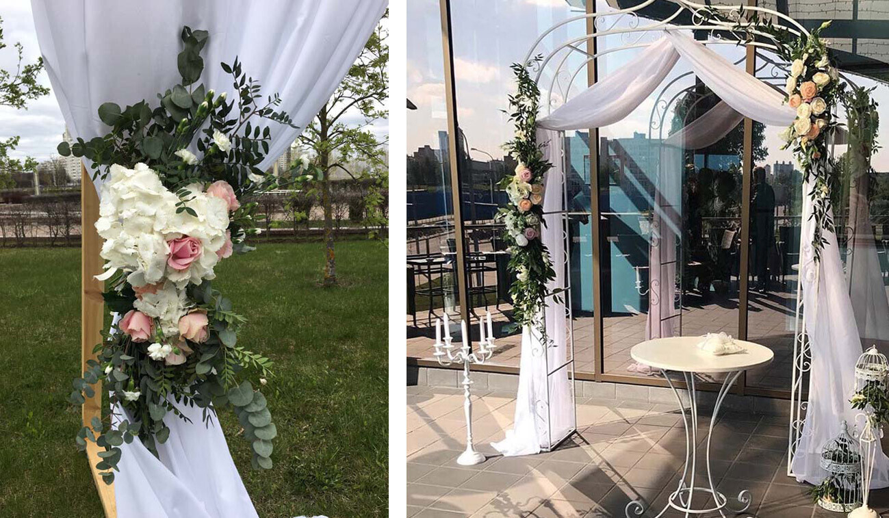 Декор для выездной регистрации: есть возможность предоставления, всё согласовывается индивидуально.