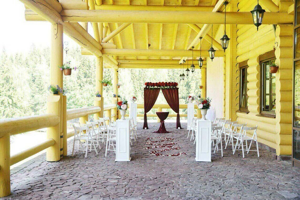 Декор для выездной регистрации: специалисты комплекса рекомендуют подрядчиков: флористов и декораторов. Декор можно подобрать согласно пожеланиям и бюджету пары.