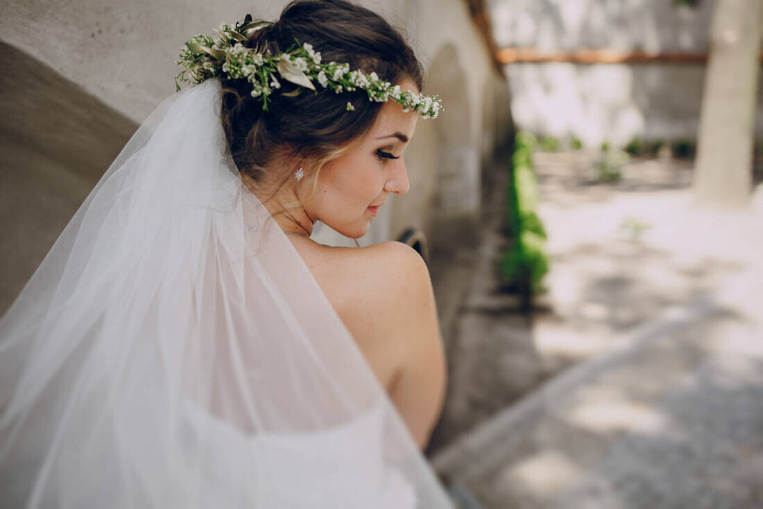 - В плане аксессуаров в моде в 2021 году будут венки из сезонных цветов: васильков, пионов и лаванды. Классическую фату фэшн-эксперты рекомендуют заменить гребешками и заколками с камнями.
