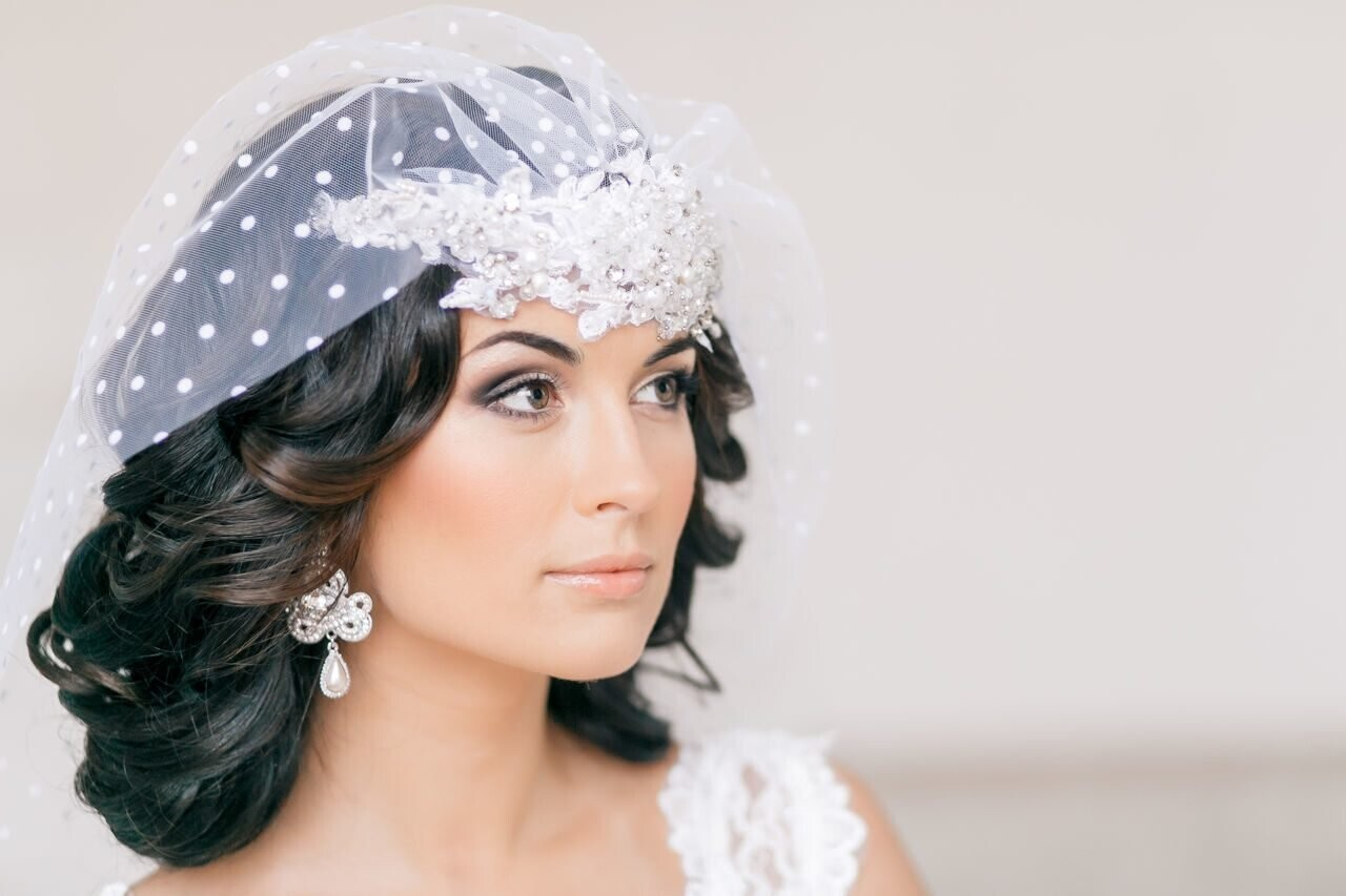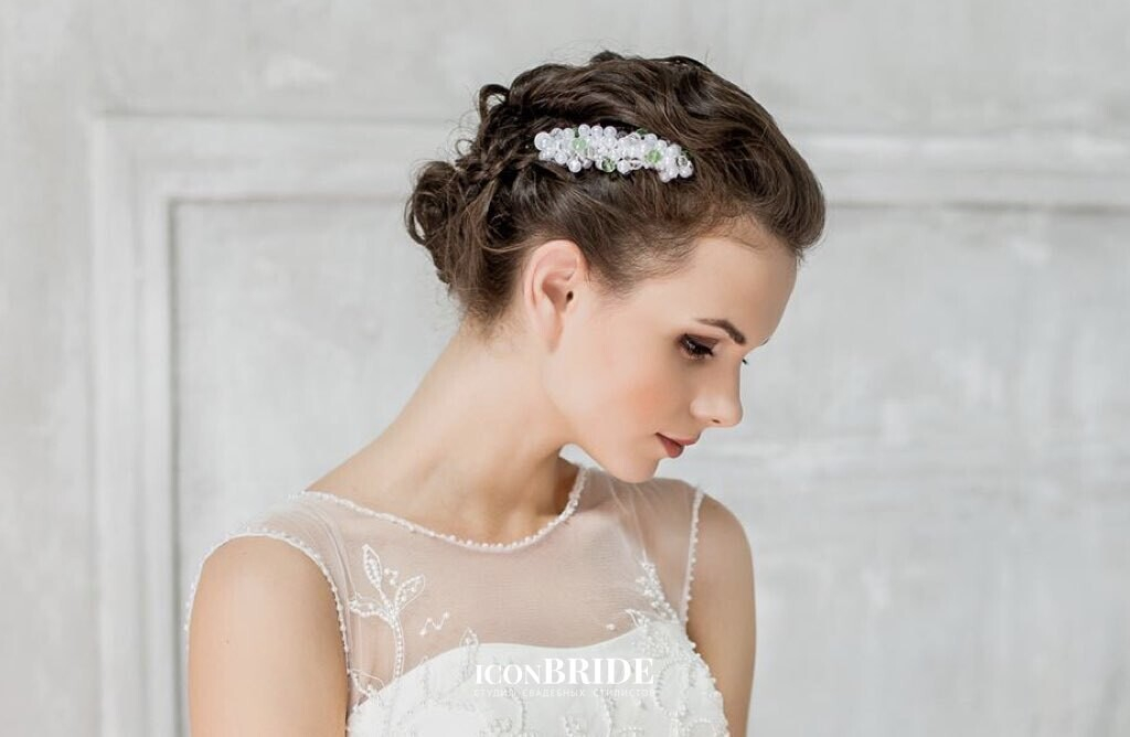 - А в случае, если длины совсем нет, на помощь могут прийти свадебные аксессуары. В частности, диадема, обруч, шелковые ленты, заколки со стразами или жемчугом.