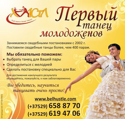 Дополнительную информацию вы также найдете на сайте клуба парных танцев «Хастл» в разделе Свадебный танец (www.tancuem.by).
