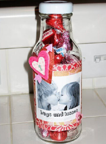 Вам нужны стеклянные баночки разной формы и размера, конфеты, желатинки, печенье, декоративные ленты, вырезки из журналов, распечатанные фотографии, бусинки, стразы — словом, все, что на ваш взгляд подойдет для декора подарка ко Дню Святого Валентина.
