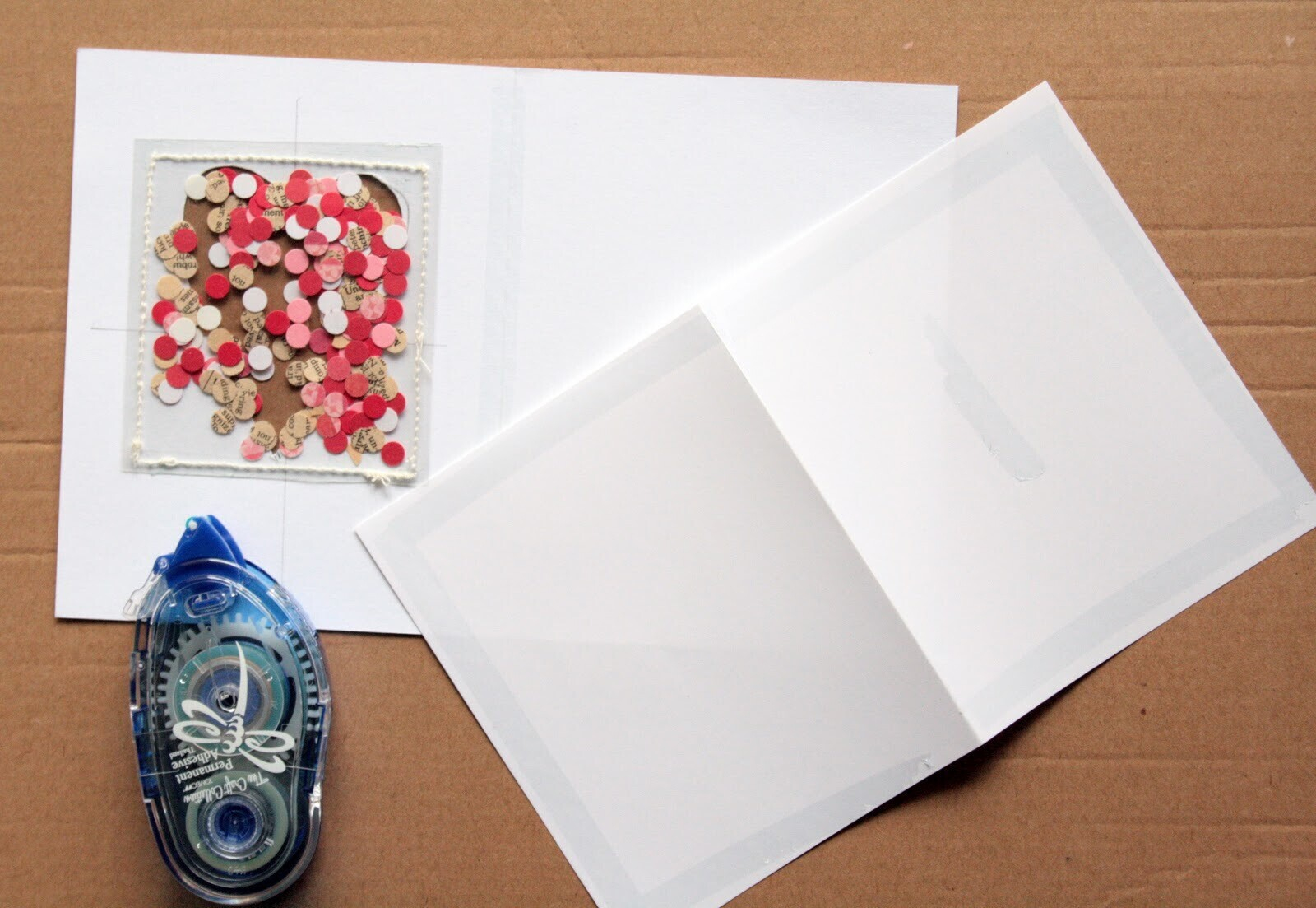 7. Приклейте лист бумаги внутри, чтобы спрятать конфетти.