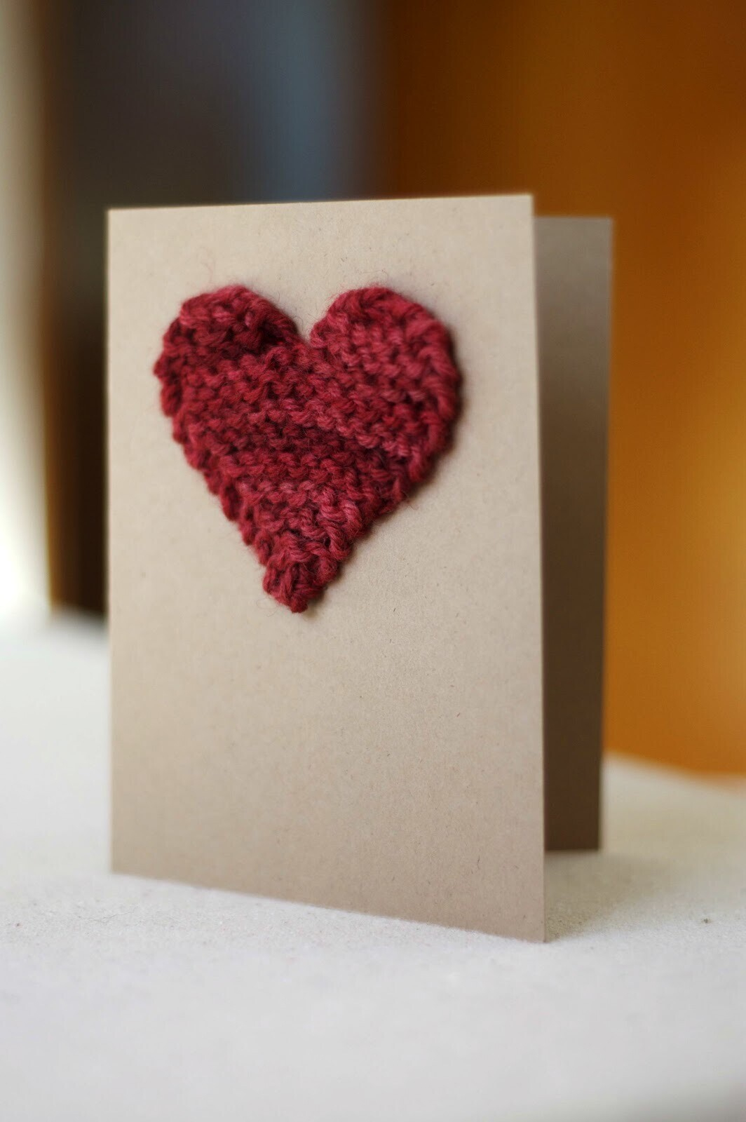 2. Возьмите картон, согните пополам и на лицевую сторону приклейте сердечко. Снизу прикрепите надпись. Открытка готова!