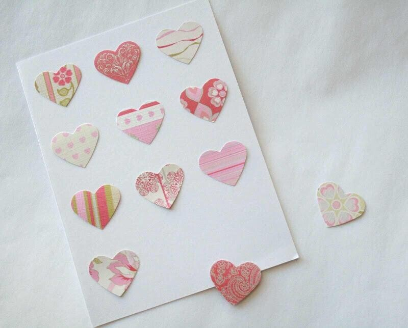 3. Возьмите по два разных сердечка и разложите их на лицевой стороне открытки.