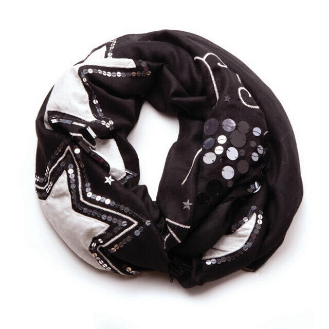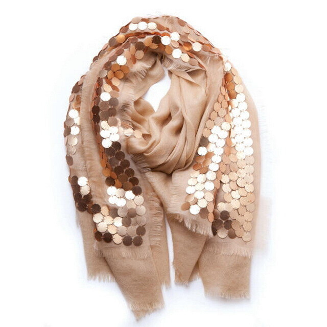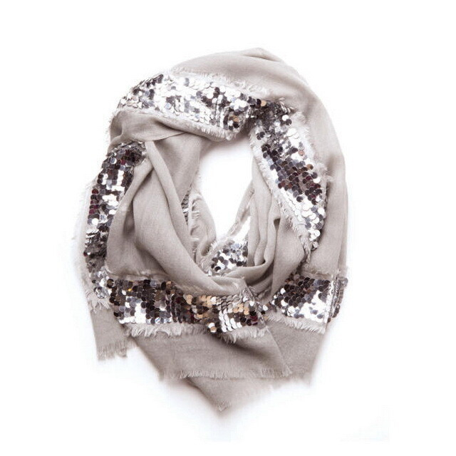 Еще один вариант — пайетки. Только они обязательно должны быть крупного размера. Мелкие пайетки на крупном теплом шарфе попросту потеряются.