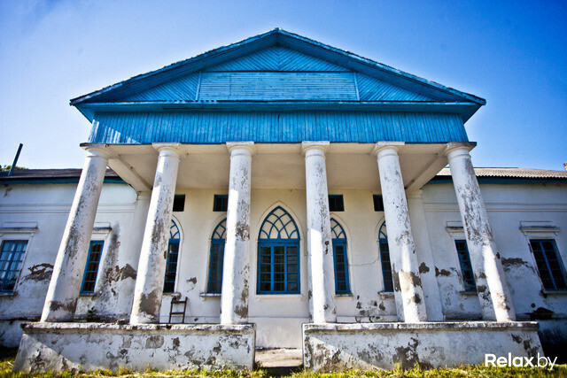 Для того чтобы попасть в поместье, необходимо проехать насквозь всю деревню и добраться до хозяйственной ее части. Среди хлевов ищите здание с бело-синими колоннами. Оно было построено здесь в начале XIX века, но сама усадьба Нача, как утверждает наш проводник Марина, упоминается еще в столетии XV, когда принадлежала Немировичам. Потом она перешла во владения великого князя литовского Сигизмунда Августа, который подарил ее некому Брынзде, имя которого дало второе название поместью — Нача Брынздовская.