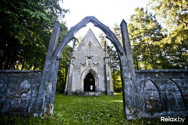 После того как вдоволь нагуляетесь по аллее и начитаетесь польских посланий, обязательно отыщите грушевскую часовню. Как окажетесь за центральными воротами, сверните направо и езжайте прямо до конца поля. Там нужно будет повернуть направо и проехать вдоль леса еще минутку. Часовня та — настоящий готический храм в миниатюре. Марина рассказывает, что место для строительства выбирали так, чтобы первые лучи солнца обязательно падали на ее фасад и играли светом в разноцветных окнах. Сегодня, несмотря на то что окон совсем не осталось, часовня впечатляет. Сюда, говорят, съезжаются поляки со всего света, чтобы отдать дань уважения Тадеушу Рейтану — оставить венки и зажечь лампадки.