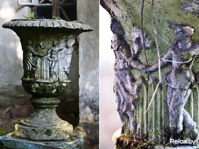 Рядом с поместьем раскинулся парк. Когда-то там росли черный орех и конский каштан с розовыми и белыми цветами, привезенный аж из Северной Америки, лиана китайская, лиственница польская и много еще чего любопытного. Будет время — попробуйте пробраться сквозь крапиву и бурелом и отыскать парковые солнечные часы. Их роль выполняли когда-то высаженные кругом 12 лиственниц. Сохранились из них, правда, только четыре.