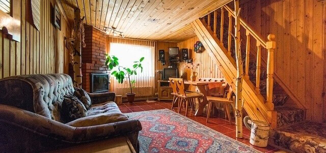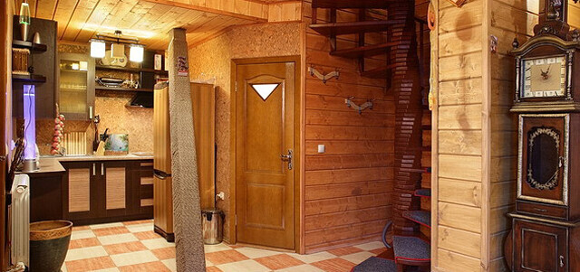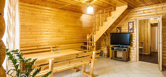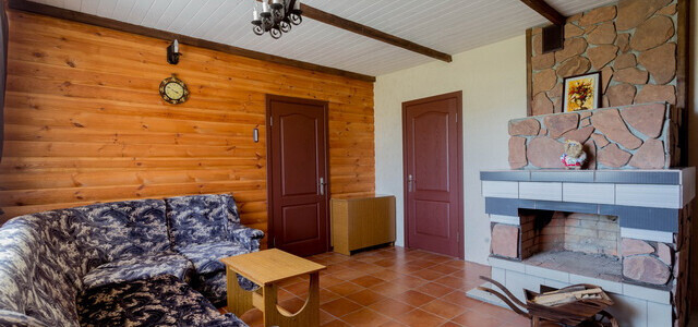 Главная особенность дома — наличие русской печи с лежанкой. Есть еще русская баня с дубовыми вениками, бассейн, комната отдыха с камином и кожаным диваном.Вместимость: до 15 человек