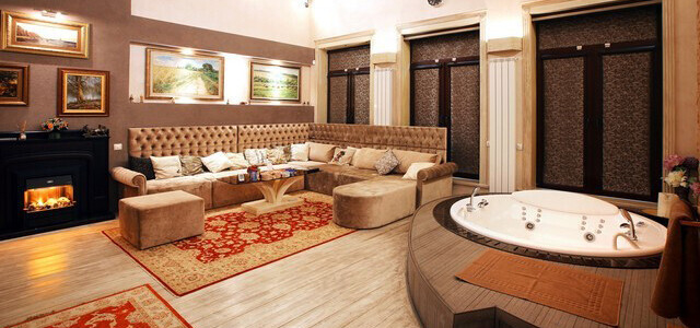 Кроме простой аренды, можно здесь и шумно отметить праздник: за 2 000 000 с 21:00 до 2:00 предлагают ночь в ресторане с программой и, конечно, праздничными блюдами. Разместилась вилла в 500 метрах от МКАД.Вместимость: пока большое количество (поскольку это номера в мини-отеле)