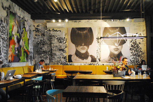 Кстати, трансформации подвергся и сам бар. Его стены безжалостно разрисовали граффитисты в той их манере, которая обычно считается «маранием» подъездов. И за этим тоже интересно наблюдать: бар совершенно преобразился, наполнился другим смыслом, сам стал холстом. Терпеть все это ему придется аж до 21 января, а после завершения проекта работы будут выставлены на благотворительный аукцион.