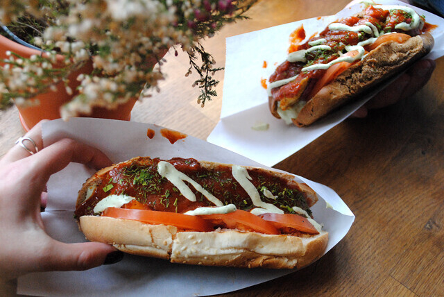 , я написала мужу смс с фразой «нашла тебе лучшие хот-доги в городе». К сожалению, мои пути через Октябрьскую улицу проходят нечасто, поэтому проверить, на самом ли деле эти хот-доги лучшие, не удавалось долгое время. На его мнение по части стрит-фуда я полагаюсь безапелляционно: если я могу безжалостно экспериментировать над своим желудком, то он придирчив и критичен.