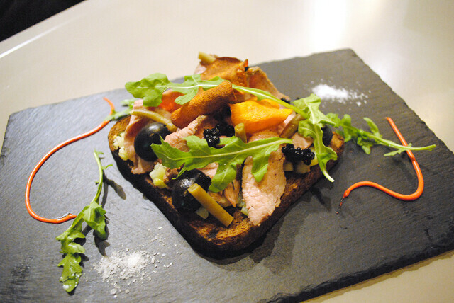 Я заказала три (не брала тот, что с креветками), у меня любезно поинтересовались, уверена ли я в своих силах. Потому что сморреброды большие! Представьте себе квадрат тостового хлеба, на котором горой лежит салат. Руками есть такие бутерброды не представляется возможным, но это нестрашно. Главное, что они потрясающе вкусные! Тот, что со слабосоленой семгой (ее предварительно маринуют в джине с пряными травами), нежный и свежий, вкус рыбы ненавязчивый. Тот, что с куриным филе, вообще вне конкуренции. Хотя и с ростбифом достойный.
