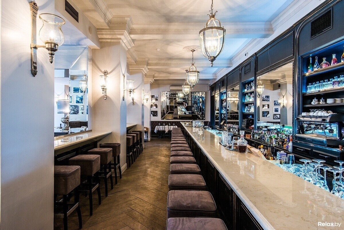 Стойка в Café de Paris тянется бесконечно, а это значит, что за ней вам точно найдется местечко. Не думаю, что в Минске еще хоть где-то есть такая алкогольная артиллерия, но, если вам уже приелась классика, а в новых трендах вы не разбираетесь, можно взять что-то из сезонного меню. Летом, например, был коктейль на джине с розовой водой.