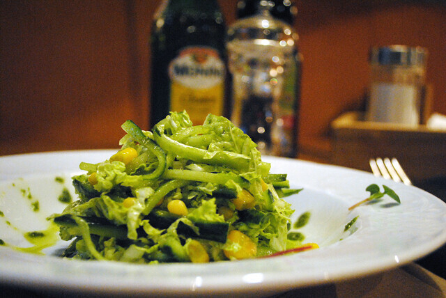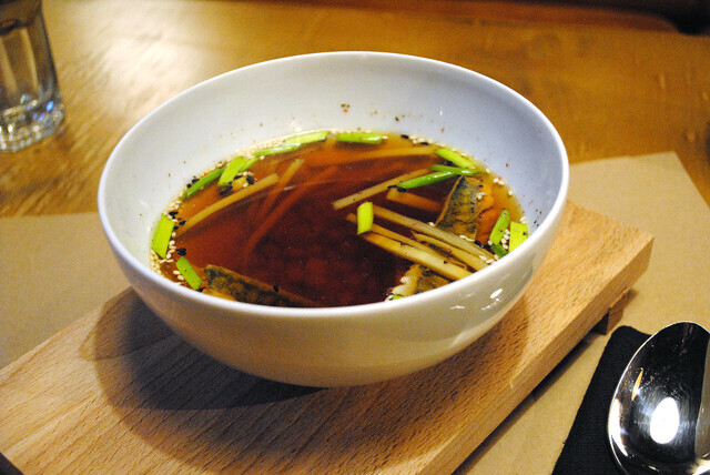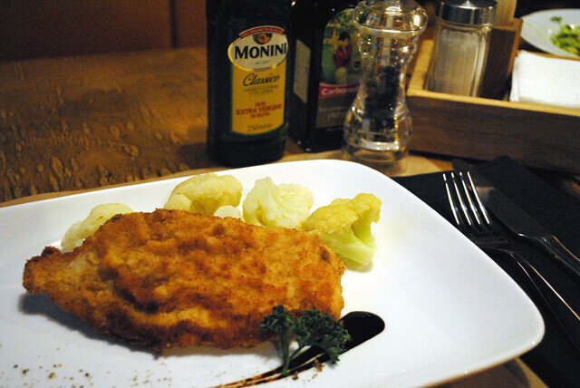 Я как-то не сообразила, что рыбный бульон будет на азиатский манер с лемонграссом, кунжутом и специальным соусом. Не острый, приятный, мягкий, интересный вкус. Не густой, не наваристый суп, а именно бульон. Хорош для таких промозглых дней, когда хочется согреться. Салат свежий, хрустящий, так и просится, чтобы его посолили и поперчили. Но приятный. Заправлен песто. Куриный шницель вообще сложно испортить, как мы решили на пару с официантом. Творожный пирог в меру сладкий с клубничным топпингом.