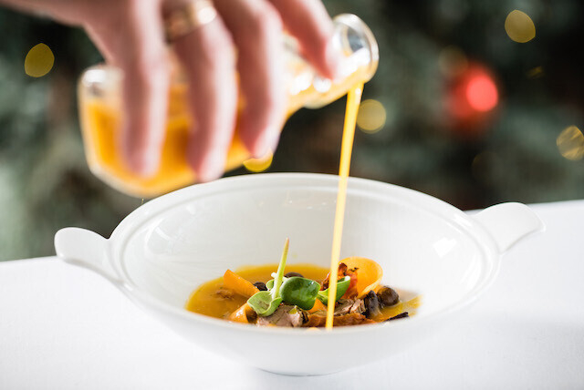 Сет будет состоять из 5 позиций: свекольного хлеба с грибным маслом, тартара из норвежского лосося с муссом из цветной капусты, сырным кремом и красным салатом, тыквенного супа с говядиной, чипсами из грудинки и ростками подсолнуха, карамелизированного утиного филе с чесночными крутонами и гелем из манго. А на десерт — яблочная карамель с шоколадным штрейзелем и черничное мороженое со сладкой ватой. Звучит все интригующе и многообещающе, а стоит уже традиционно — 24 рубля. Советую бронировать столики заранее.