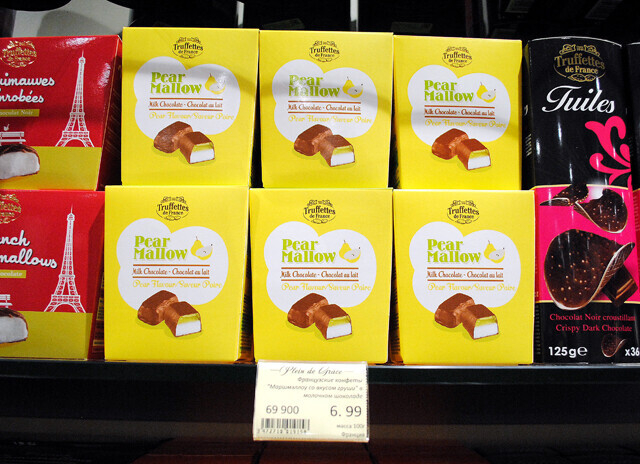 Мягкая нуга, маршмеллоу с грушей, шоколадные чипсы, флорентины с миндалем и клюквой — выбирать можно по коробочкам или по наиболее непривычному названию.