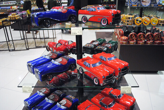 Шоколадные мишки, коробки с печеньем в виде машинок, конфеты размером с футбольный мячик, да и просто россыпь конфет — яркие обертки, вкусные начинки. Дети будут в восторге.