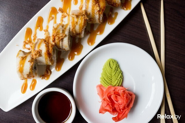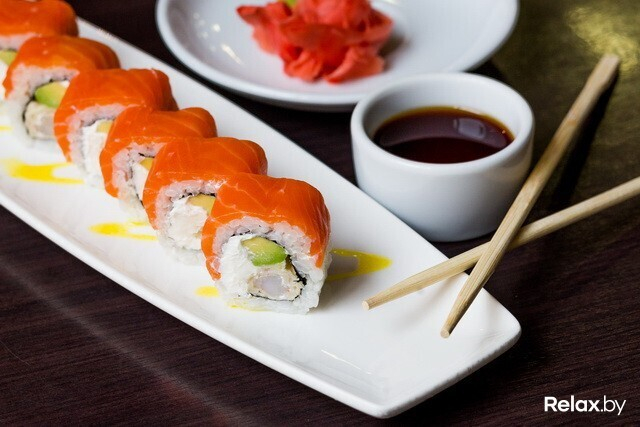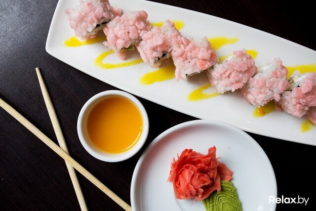 К роллам «Хакусан» советуют вместо традиционного соевого соуса заказывать «Балийский цитрус». Он сладкий, на вкус апельсиновый. Если вы любитель экспериментов или вам нравится сладость в несладких блюдах — попробуйте. На вид эти роллы тоже интересные: розоватая обсыпка из креветочных чипсов придает им «кукольный вид». Недаром в народе их прозвали «Барби роллами». Такой же соус используют в приготовлении роллов «Балийский цитрус» с обжаренной в темпуре креветкой, сливочным сыром, авокадо и лососем.