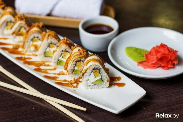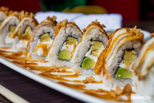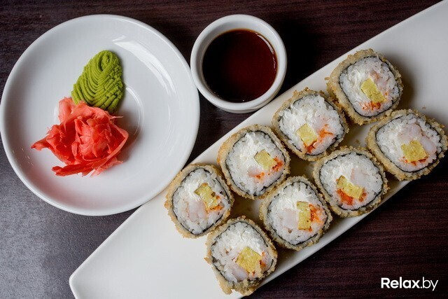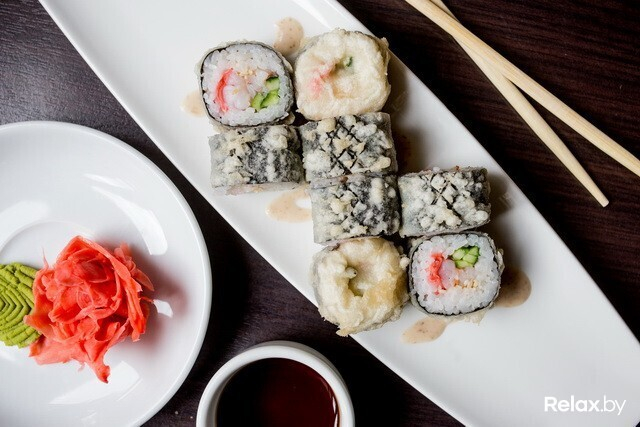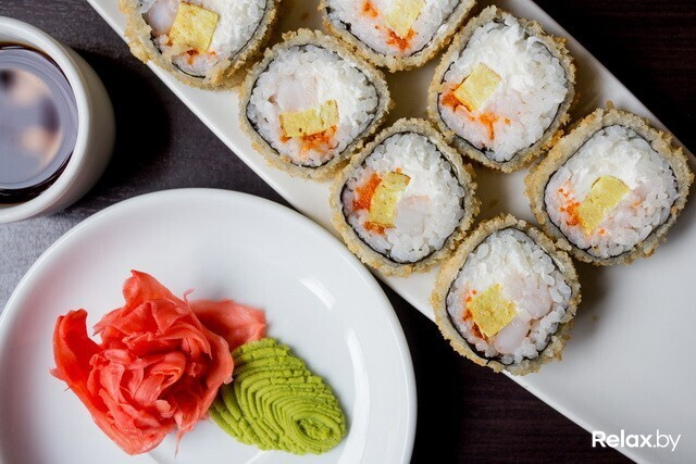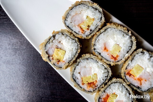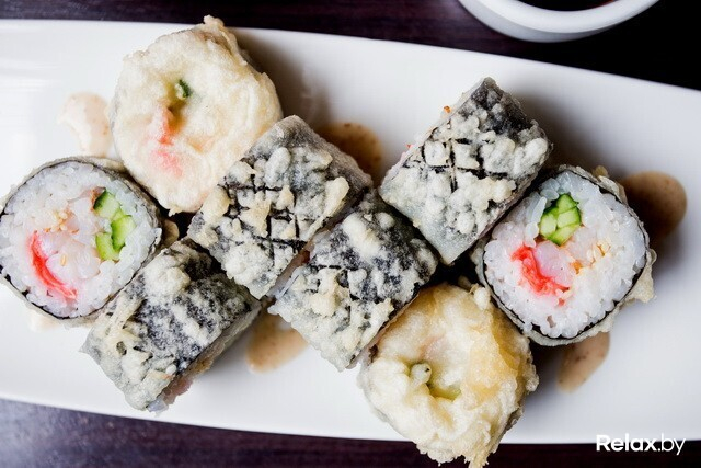 Теплые роллы «Темпура» и «Тояма маки» подаются в панировке. «Темпура» — с начинкой из тигровой креветки, маринованного имбиря, огурца и кунжута. Подаются с ореховым соусом, который рекомендуется заказывать к ним и отдельно. «Тояма маки» — это роллы с креветкой, омлетом, икрой тобико, которая приятно хрустит во рту, и сливочным сыром.