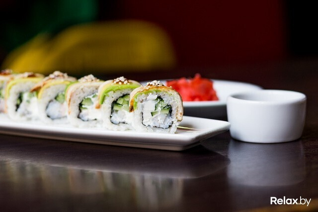 «Нантай» — роллы с угрем, сливочным сыром, авокадо и японским омлетом. Вообще, роллы с омлетом — это моя слабость, даже объяснить не могу, почему они мне нравятся. У этих роллов интересная форма — треугольная, названы они так в честь японского вулкана. Особенность роллов — в сладковатом соусе, с которым их подают, и в карамелизированном хрустящем луке. Симпатичны и «Фэнтази маки» со сливочным сыром, тигровой креветкой, угрем, авокадо и огурцом.