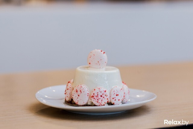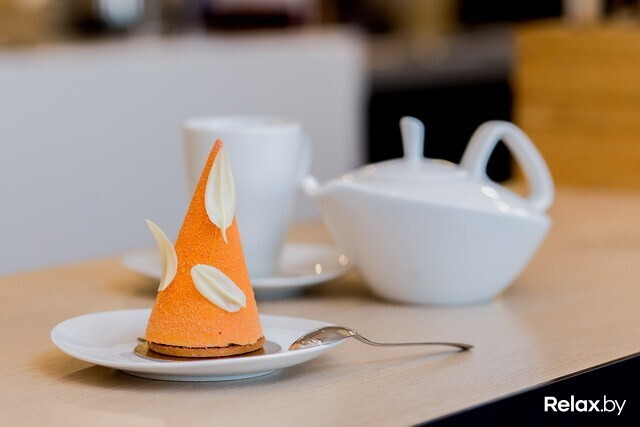 Про десерты надо рассказать отдельно. Делают их здесь, на месте, ниоткуда не привозят. Выглядят они интригующе, особенно синий треугольник под названием «Свекольный удар». Кроме свекольного кули в его состав входит мусс на козьем сыре. Очень необычный вкус. Рядом с ним — оранжевая башенка «Оксанелла». Десерт назван в честь одного из поваров. Внутри «колпака» из бисквита на сгущенке красносмородиновое кули и мусс из молочного джема. Есть десерты со вкусом черной смородины и лаванды («Прованс»), лимона с йогуртовой меренгой («Лимонный тренд») и более привычные для нас чизкейки и тарталетки.